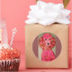Coloque em todos os lugares esses adesivos clássicos redondos brilhantes com o design brilhante de um cão de vassoura rosa!