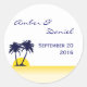 Um adesivo moderno perfeito para um casamento na praia. Apresenta duas palmeiras em azul marinho com um pôr do sol amarelo no fundo e listras amarelas no fundo. Excelente para um evento com tema oceânico, mar ou praia. Design limpa e elegante com um olhar contemporâneo. Use-o para selar envelopes ou favoritos para festas. ENTRE EM CONTATO COM O MARLENEDESIGNER SE NECESSITAR DE UMA ALTERAÇÃO DE COR OU DE FORMULÁRIO