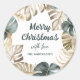 Corante aquoso tropical verde e coroa dourada por baixo de palmeiras Merry Christmas Stickers Gift Tags. Clique no botão editar/personalizar para personalizar este design com seu texto.