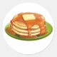 Este design é um cheio de pratos de panquecas deliciosas. No prato estão três panquecas com xarope de bordo rolando sobre eles e um pouco de manteiga derretendo no topo. Eles parecem tão deliciosos. Este design de panquecas parece excelente nestes adesivos. Perfeito para si mesmo ou como presente