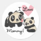 Um urso de panda das mamães e do bebê projeta com um fundo e um texto cor-de-rosa e uns corações e um texto que leia mamães do amor de I em t-shirt, bodysuits, canecas, cartões, etiquetas, as bolsas, ímãs, e um mais brancos.