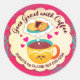 Uma xícara de café super fofa e uma placa de biscoitos neste adesivo de embalagem para produtos cozidos, personalizados com o seu texto e esquema de cores, o toque perfeito para uma padaria ou uma padaria caseira.