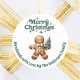 Perfeito para biscoitos caseiros, produtos de padaria. Um fundo branco, texto verde. Feliz Natal é escrito com uma fonte de estilo retrô. Decorado com um homem de pão de gengibre segurando uma árvore de Natal. Personalize e adicione sua família
