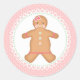Este design de biscoito de gengibre apresenta um biscoito festivo Gingerpão decorado com cor de rosa sobre fundo branco com bolinhas rosa e branca. Coordena-se com a coleção do Partido Gingerpão.