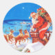 Adesivo Redondo Papai Noel e sua Reindeer no Telhado
