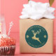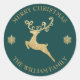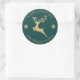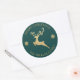 Adesivo Redondo Personalizado Natal Feliz Rena Dourada e Azul Brilhante.