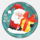 Adesivo Redondo Papai Noel segurando caixas de presentes Natal