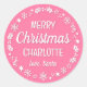Adesivo Redondo Papais noeis de Natal - Nome Personalizado Rosa