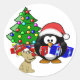Adesivo Redondo Papais noeis de pinguim e Cão-de-Reena