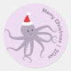 Adesivo Redondo Papais noeis de polvos roxos Feliz Natal