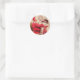 A ilustração vítrea de Papais noeis com boné de neve e cachecol é uma forma encantadora de selar sua papelaria de Natal. Há 20 adesivos redondos por folha para este design.