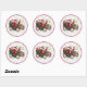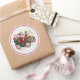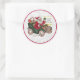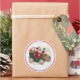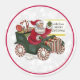 Um adesivo redondo para combinar o nosso cartão de saudação "Cartões de natal 1" com uma imagem vintage dos anos 40 do Santo Nick acenando saudações de seu carro enfeitado com doces de menta em neve. Fronteira vermelha. Consulte colante de vinil com corte personalizado, Consulte confete correspondente, caixa de favor, etiqueta de favor, sacos de presentes, etiqueta e papel de embalagem. Veja toda a coleção do Holiday Sticker nos CONVITES | Seção Stickers & Labels