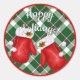 Adesivo Redondo Papais noeis Mittens Vermelhos No Padrão De Verifi