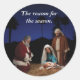 Adesivo Redondo Papais noeis se ajoelhando na Natividade