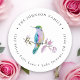 Um adesivo redondo de endereço de retorno elegante e sofisticado com um beija-flor em aquarela macia pintada à mão. Personalize e faça seu!