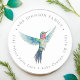 Um adesivo redondo de papel de carta elegante e lindo com um beija-flor pintado à mão em aquarela em detalhes coloridos impressionantes. Personalize para torná-lo seu