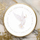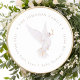 Um adesivo redondo de endereço de retorno elegante, apresentando uma pomba branca da paz pintada à mão com aguarela macia, segurando um ramo de oliveira. Personalize e faça o seu!