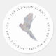Um adesivo redondo de papel de carta elegante com uma pomba de luto (ave da paz) em voo, pintada à mão em aquarela macia. Personalize e faça seu!