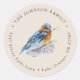 Um adesivo redondo de endereço de retorno elegante e lindo, apresentando um pássaro azul de primavera pintado à mão em um ninho. Personalize e faça o seu próprio!