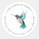 Um beija-flor-de-garganta-rúbea pintado à mão em aquarela em um adesivo de endereço de devolução chic