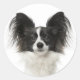 Adesivo Redondo Papillon Black E White Puppy Dog - Cachorro Adoráv