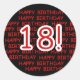 Design de 18 de aniversário feliz, preto, vermelho e branco, em T-shirts, cartões, canecas, botões e outros artigos de 18.o aniversário.