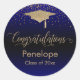 Adesivo Redondo Parabéns Azul de Graduação Confetti Dourado