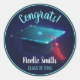 Adesivo Redondo Parabéns! Boné de formatura Azul Espumante, Classe