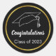 Adesivo Redondo Parabéns Classe de 2023 Preto Branco Dourado