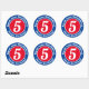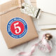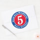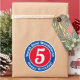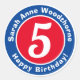 Feliz aniversário aos cinco anos. Os adesivos de aniversário para uma criança de cinco anos. Vinheta de aniversário feliz, que é decorada com o nome do receptor, a mensagem "Parabéns" e a idade da criança - 5 anos.
