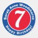 Vinheta de aniversário feliz, que é decorada com o nome do receptor, a mensagem "Parabéns" e a idade da criança - 7 anos. Aniversário presente.