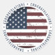 Diga parabéns ao seu soldado militar com este adesivo de parabéns de Bandeira Americanas. Perfeito para os soldados se formarem no campo de botas, desfilarem, se formarem militares e se aposentarem militares. Veja nossa coleção para combinar presentes de aposentadoria militar, presentes de graduação militar, convites de festas militares, favoritos para festas e suprimentos. COPYRIGHT © 2021 Judy Burrows, Black Dog Art - Todos Os Direitos Reservados. Elemento clássico redondo com Parabéns de sinalizador americanos patrióticos
