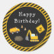 Adesivo Redondo Parabéns de Construção com Menino da Idade
