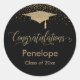 Adesivo Redondo Parabéns Dourado de Graduação de Confetti Preto