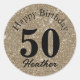 Esta etiqueta adesiva personalizada apresenta um fundo glamouroso de ouro brilhante. Uma amostra da 50ª mensagem de aniversário feliz é impressa no topo, seguida de um nome de exemplo em uma fonte elegante de script. Você pode personalizar os adesivos para incluir seu próprio tipo de evento ou ano de aniversário.
