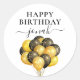 Personalize seus adesivos de festa de aniversário com seu nome em uma tipografia de assinatura de script com balões de ouro e preto modernos. Celebrar com modernos suprimentos festivos. Adequado para qualquer idade. Use adesivos para bolsas favoritas, selos de envelopes e adesivos para presentes.