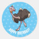Vinhetas com uma avestruz encharcada, com uma boogie de aniversário, com chapéu de festa listrado e soprador pontilhado de polca. O texto padrão diz: "FELIZ ANIVERSÁRIO!" Altere para uma mensagem ou legenda do alternativo, se preferir.