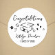 Adicione um toque final polido com este adesivo redondo com o texto “Parabéns” e desenhos divertidos relacionados à formatura (gorro, diploma, corações e flores). O estilo limpo em preto e branco funciona perfeitamente como adesivo de favor, selo de saco de guloseimas ou adesivo de envelope para convites de formatura e festas de graduação. Personalize com o nome do formando e o ano de conclusão para um visual coeso e personalizado.