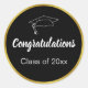 Adesivo Redondo Parabéns Graduação em Classe Dourada Preta Branco