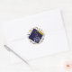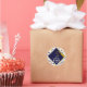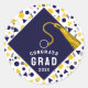 Favor de festa de formatura criativos, adesivos de presente de graduado ou selos de envelope com o chapéu de graduação azul marinho com uma borla dourada em fundo de confete. Edite o texto para adicionar o nome do graduado e o ano da turma.