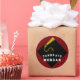Adesivos criativos de presente de formatura, etiquetas de festa ou selos de envelope com chapéu de formatura preto com borla dourada em fundo marrom. Para personalizar, edite o texto para adicionar o nome da turma de formandos.
