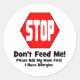 Adesivo Redondo Parada! Não me alimente! Eu tenho alergias