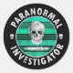 Vinheta de Investigador Paranormal em dificuldades, com um crânio e um gráfico EVP em fundo verde