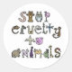 Vinhetas que incluem as palavras "Parem a Crueldade com os Animais". Cada letra é feita de um animal diferente.