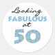 Texto preto e azul claro que se lê "Olhando fabuloso aos 50" nas Fabulosas 50 T-shirts, canecas, mousepads, botões e outros itens que fazem presentes de excelente para a pessoa que completou 50 anos, e que podem ser vestidos o ano inteiro!