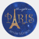 Glam Paris temia 16 adesivos redondos doces, com brilho dourado lendo texto em Paris, com a Torre Eiffel em pé para a letra a. Personalize o texto branco personalizado para ler o que você deseja. Os guardanapos e os convites estão disponíveis, excelente em favores e como selos de envelope de convite.