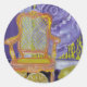 Pintura de óleo original de Susan Payne-Trutna de uma janela de Paris com uma cadeira rosa roxa, laranja e amarela, e limões gigantes.
