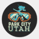 Adesivo Redondo Park City Utah Retro Skining Snowboard