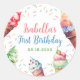 Adesivo redondo clássico de primeiro aniversario do sorvete