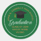 Este adesivo de festa de formatura mais velho verde e ouro personalizado apresenta tipografia branca elegante sob um boné de segundo grau ou formando para a classe de 2025. Personalize com o seu ano de graduação e o nome do formando do mais velho sob a elegante caligrafia.